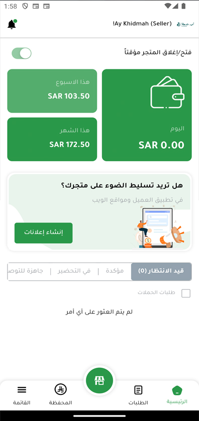 إحدى المنصات داخل التطبيق وقد صُممت لتمكين الأسر المنتجة و أصحاب الأعمال الحرة من خلال توفير منصة مخصصة لعرض وبيع منتجاتهم وخدماتهم. بفضل ميزاته سهلة الاستخدام، وخيارات الدفع الآمنة، ودعمه المجتمعي القوي، يساعد التطبيق الوصول إلى أسواق أوسع.
